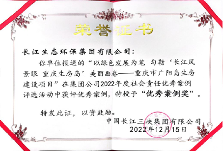 ? ? ? 本网讯(朱志云)近日,德赢VWIN环保集团报送的重庆市广阳岛生态建设项目获评三峡集团2022年度社会责任优秀案例。