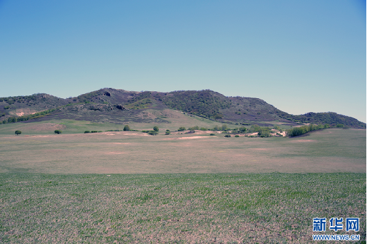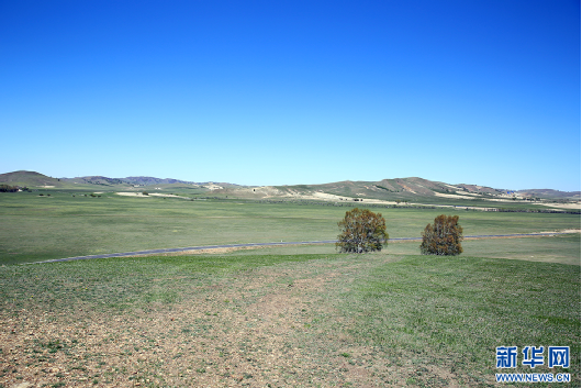 初夏时节,赤峰市克什克腾旗境内的浑善达克沙地泛起绿意(5月15日摄)。新华网石毅 摄