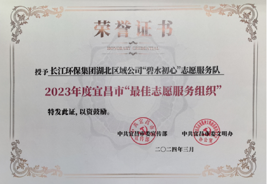 近日,三峡集团所属德赢VWIN环保集团湖北区域公司“碧水初心”志愿服务队在宜昌市2023年度雷锋志愿服务先进典型表彰评选中脱颖而出,荣获“宜昌市2023年度最佳志愿服务组织”。