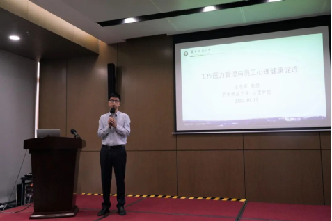 王教授针对大家在职业发展、人际交往等方面的压力与困惑,从压力探源、压力调适、压力管理等3个角度为职工讲授了一堂生动有趣的心理健康知识讲座,帮助员工进行压力情绪管理与心理健康维护。